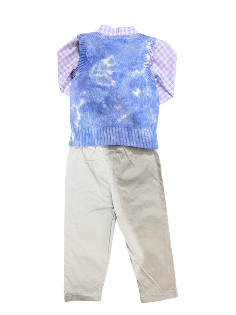 L/S GINGHAM BODYSUIT, KNIT VEST & CHINO PANTS